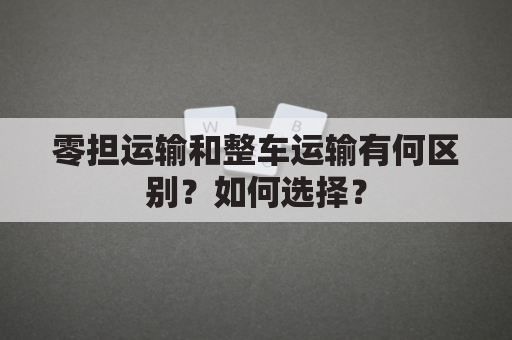 零担运输和整车运输有何区别?如何选择?